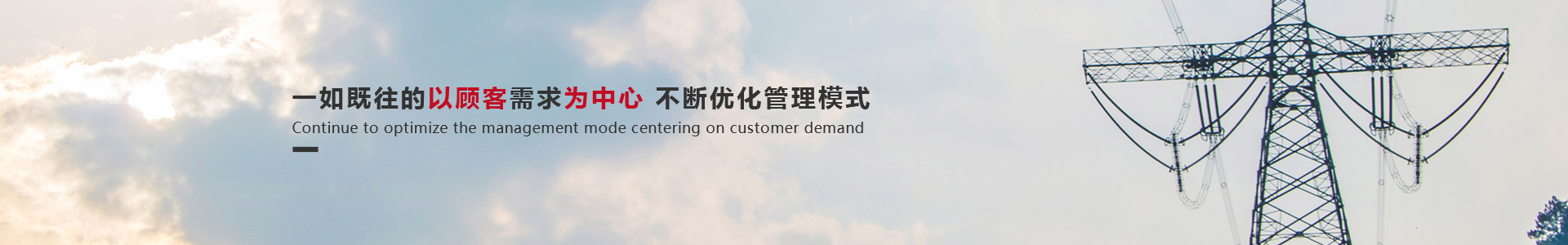 我們堅信擁有行業領先的信念和追求卓越的精神是我們成功的基礎。我們將一如既往的以顧客需求為中心,不斷優(yōu)化管理模式;提高對市場的應變能力;勇于開拓創(chuàng)新;立足國內,走向國際,誠信服務。精心打造國產名牌產品,始終保持在預絞式金具行業的領先地位,攜手廣大客戶共同推動中國電力事業的發(fā)展,共創(chuàng)輝煌。
